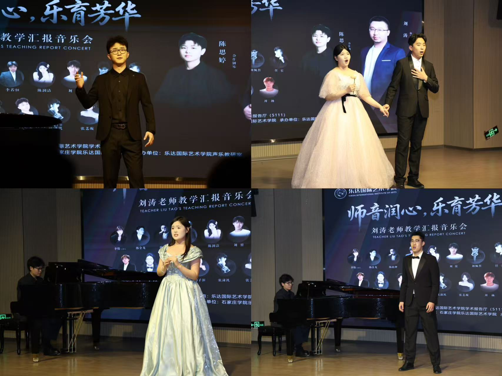 随着悠扬的伴奏声响起,汇报演出正式拉开帷幕。本次音乐会曲目丰富多元,涵盖中外经典声乐作品、歌剧选段及红色经典曲目,参演者凭借扎实的专业基础和真挚的情感表达,生动诠释了每一首作品的内涵。演出中,《思乡》《放风筝》《想亲娘》《白云故乡》等作品轮番上演,演唱者以细腻的声线勾勒出浓郁的乡愁与深厚的亲情,婉转的旋律直击人心;《啊,我的虎子哥》《我的爱人,你可听见》《这是泉水是磨坊》《让我们携手同行》等歌剧选段,表演者以富有张力的演唱技巧,生动再现了经典角色的情感世界。音乐会尾声,刘涛老师亲自登台献唱,带来《不答应也得答应》《快给大忙人让路》两首经典作品。刘涛老师凭借精湛的演唱技艺和深厚的艺术积淀,将作品的情感与韵味精准传递,将现场氛围推向高潮。最终,音乐会在全体演员共同演唱的《我和我的祖国》中圆满落幕,悠扬的歌声饱含着师生对祖国的深情祝福,也为本次教学汇报画上了圆满的句号。